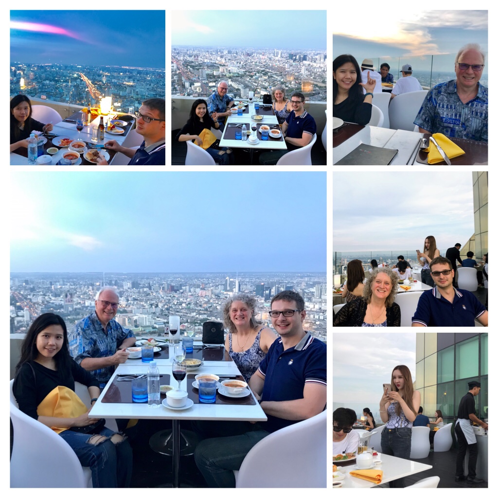 On my son’s 29th birthday he treated the 4 of us to a Buffet dinner on the balcony of the 81st floor of the Baiyoke Sky Hotel in Bangkok! Wow! What an amazing view of the bustling city of over 10 million (registered) inhabitants.