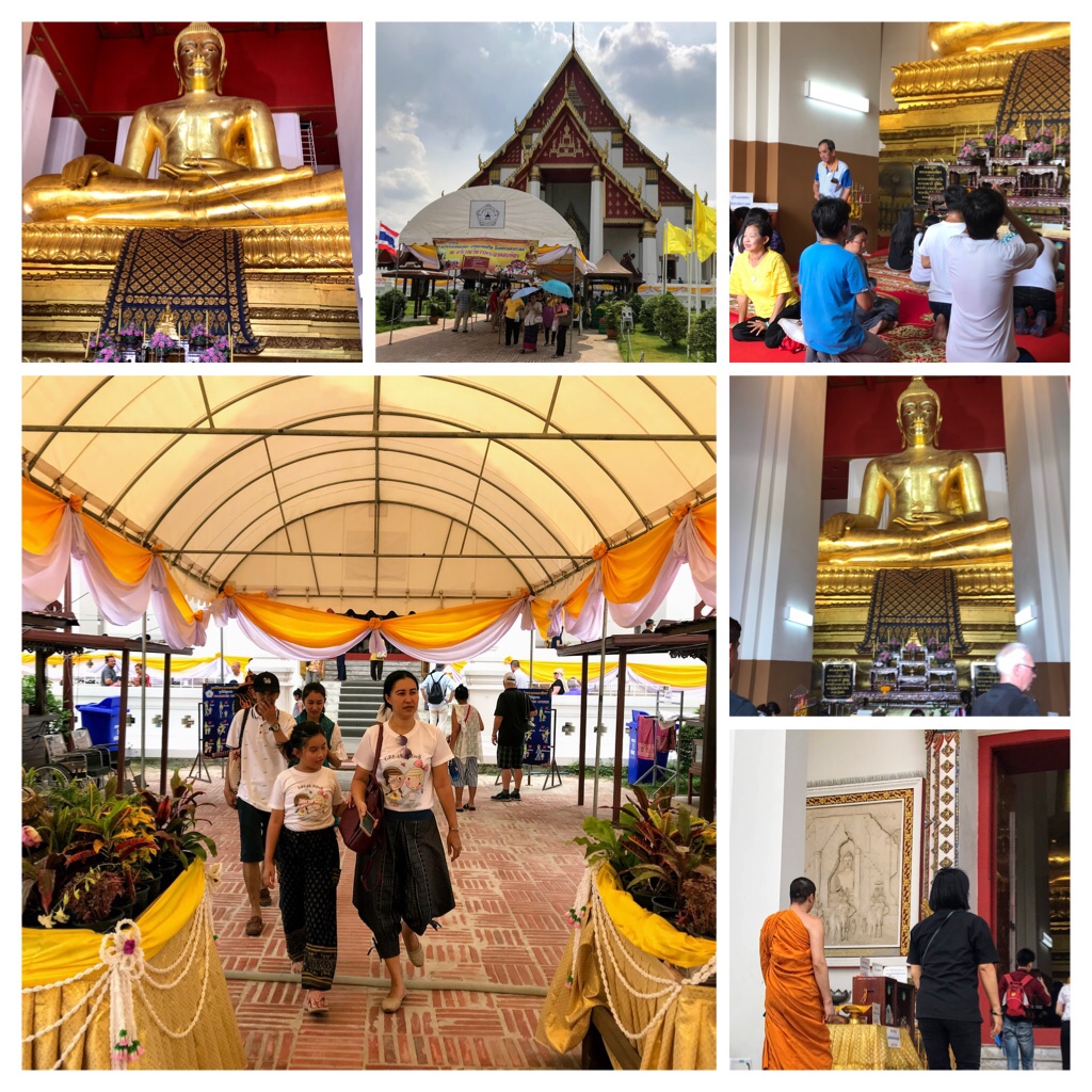We took a peek inside the new Wat too. The Yellow flags, decorations, and Portraits are to acknowledge and show respect to the King of Thailand.