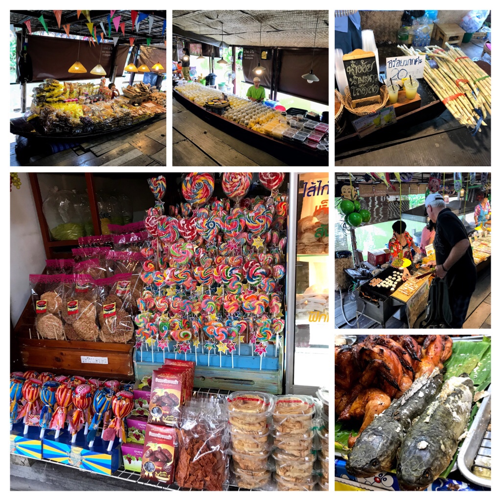 Onward to the markets. This was my first floating market experience! Benz, as a Thai citizen, entered free… we each were charged 60-70 Baht. It included a canal ride and some entertainment (which we just missed!). The canal ride in the long tail boat was enjoyable and provided a good sense of the market layout. At one spot people were feeding massive catfish.