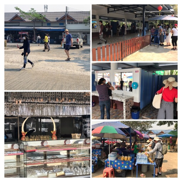 The toilets were 5 or 10 Baht to use, but were clean and even had flush capability and toilet paper! There were some very unusual items for sale in one gift shop including elephant tusks! The air quality was listed as dangerous– due to Thai pollution and extensive burning both garbage and in the jungle areas. Many people wear face masks –including Benz.