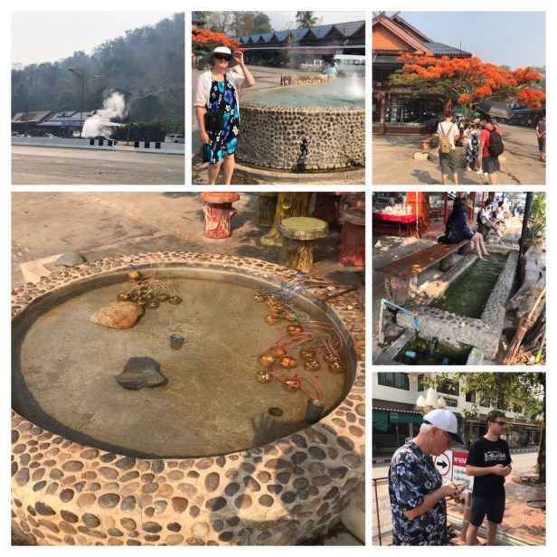 Our first stop after about 3 hours of driving, was at the hot springs at Mae Khachan. There were the usual markets and food vendors, and places to soak your feet in the natural hot springs or cook eggs in the hot springs water.