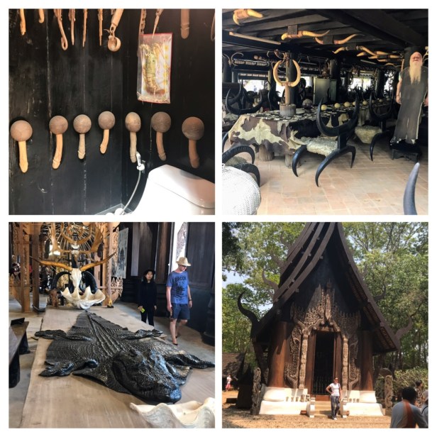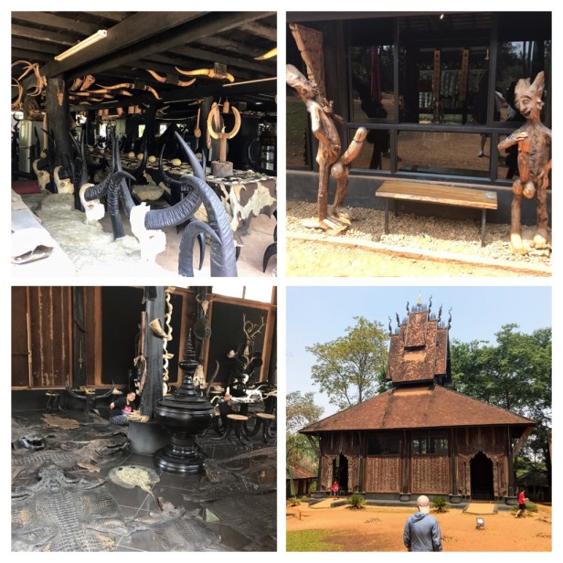 After lunch in a local Thai restaurant (no air conditioning) eating outside by the road–but decent food, we headed to the bizarre Black House (Baan Dam).