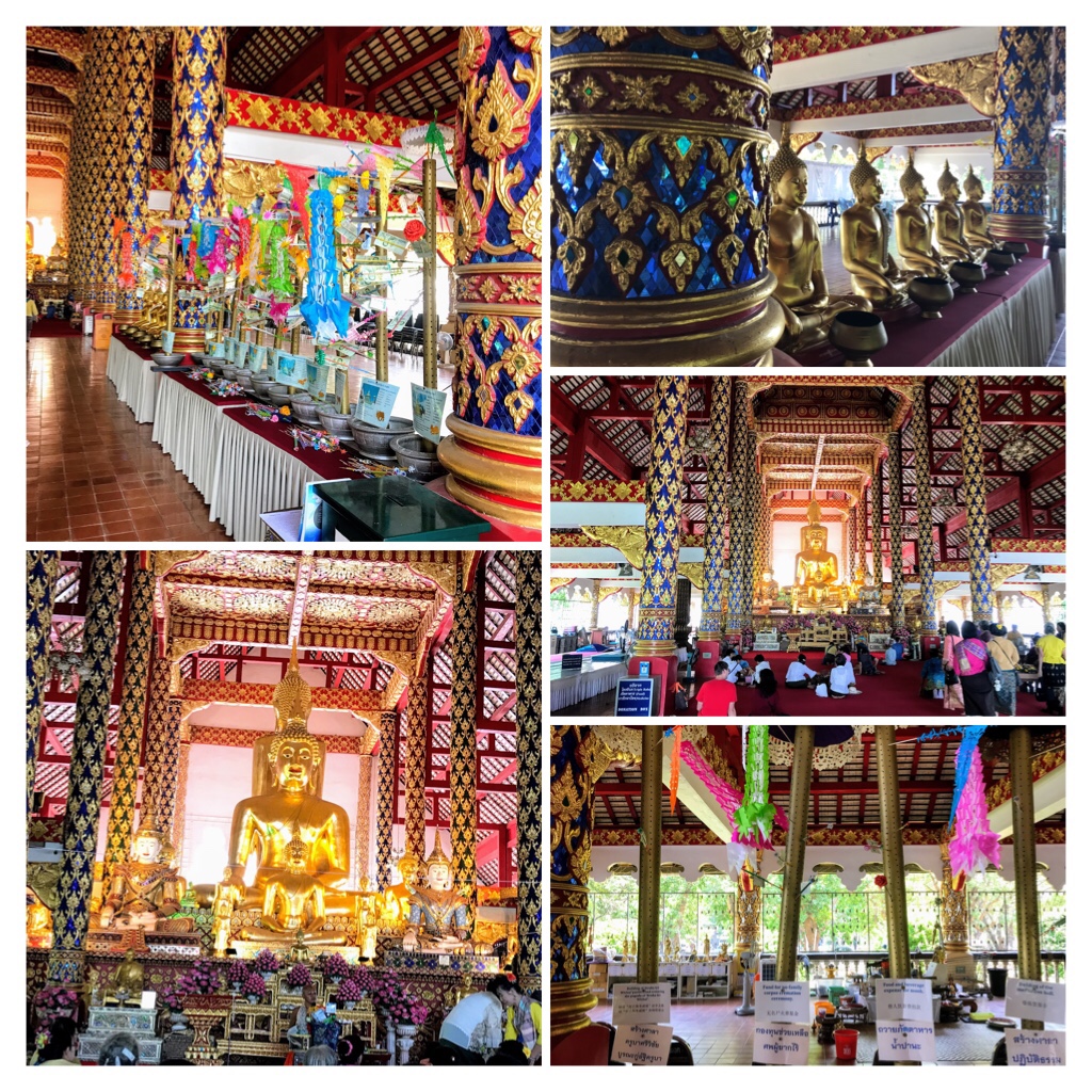 We had vegetarian breakfast at Pun Pun on Wat grounds then we travelled by red Songthaews inside the walls of old Chiang Mai city to Wat Phra Singh.