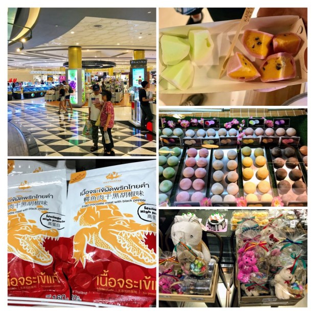 Food downstairs was diverse and plentiful on the food court level. I even noticed the first Easter chocolates I had seen in Thailand in one specialty chocolate store. We passed on the crocodile, but did try an interesting round frozen dessert.