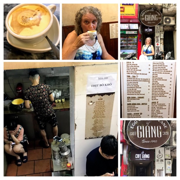 While heading to our Hotel (for the massages) we managed to locate the very famous cafe where Egg Coffee originated in Hanoi. This was quite amazing considering the tiny opening … We were lucky to discover it!!!