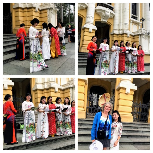 Our Hanoi Highlights tour involved a local guide and 2 other couples. We discovered that one couple was also on our Intrepid tour. Jen and Andy quickly became great friends. The Hanoi Opera House was the starting point.
