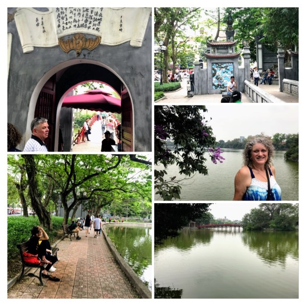 In spite of 40 degree weather, we continued walking through Hanoi around lovely Sword Lake. We quickly learned to stay in the shade as much as possible during this intense mid day heat .