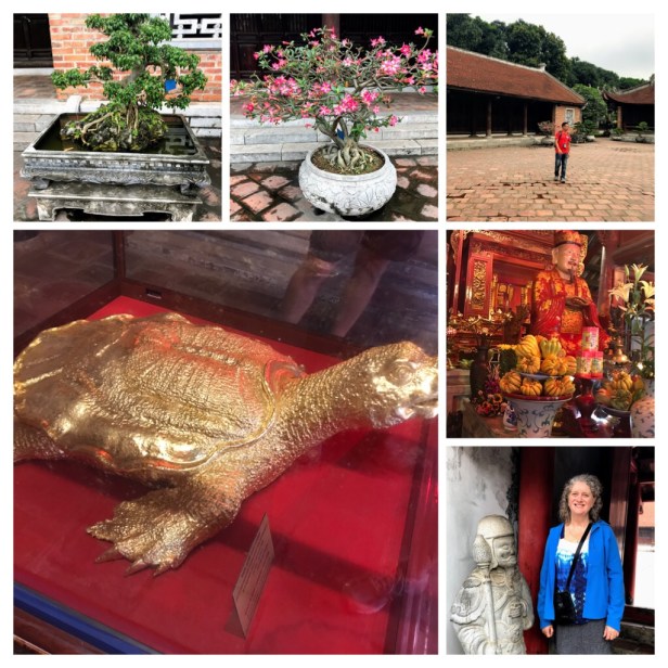 The Temple of Literature was very peaceful and beautiful. In one location there were stone stelae carried by stone turtles at the base. We learned that the names of intellects who received their doctorate degrees were engraved on to the stones. What a special way to recognize and celebrate this important event. (See photo below).