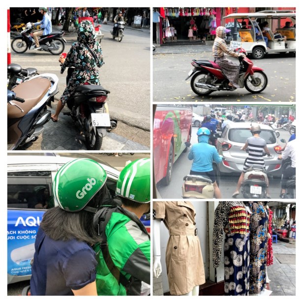 Somebody has been extremely creative in designing unique face masks (protection from air pollution) and riding outfits for the women which cover their clothing! There are many beautiful designs. Grab taxi and Grab food delivery is quite popular here. We used it successfully many times in Thailand and Vietnam.