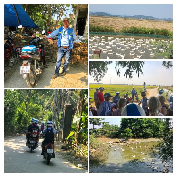 Yesterday was Cyclos… Today we had more speed on our whooping 125cc motorcycles! Before we commenced, Jay led us through a safety lesson 😉. As the day progressed, I discovered my driver spoke some English… “Hello” and “quack quack” (each time we passed duck farms!) I practiced my survival Vietnamese, “Xin chao” (Hello) and “Cam on” (thank you). We mutually recited “quack quack” whenever we passed flocks of ducks!