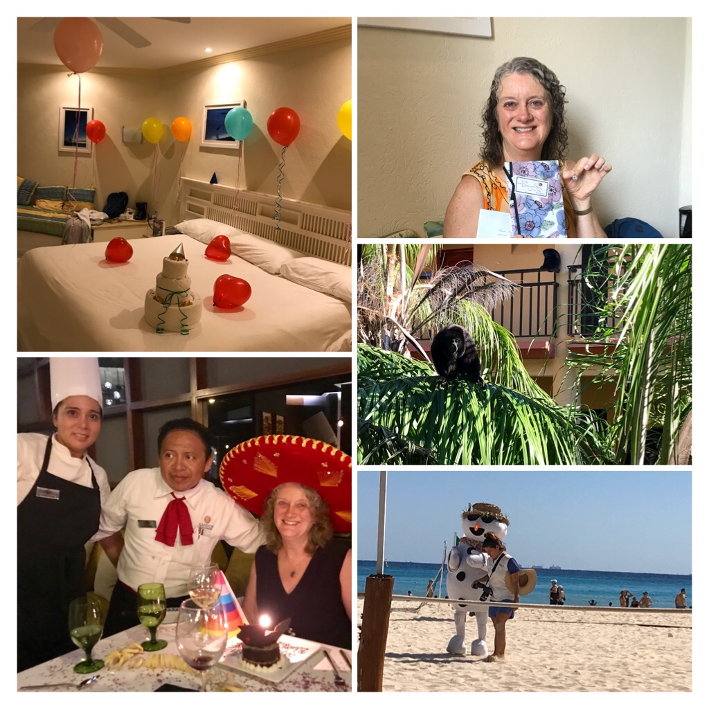 Gratefully, we had a fabulous experience and it was such a memorable way to announce my 6th decade milestone! From relaxing beaches and sunshine to walking snowmen, iguanas, howler monkeys, Mexican hats, food, friends, towels cakes, music and dance. Mexican birthdays are so much fun!!