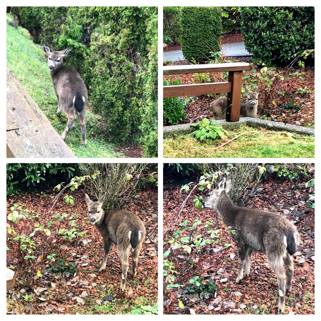 The Canadian animals on Vancouver Island are busy in the autumn and early winter. Black tailed deer are regular visitors around our yards consuming lots of leaves and plant life while their coats thicken in preparation for upcoming colder temperatures and snow.
