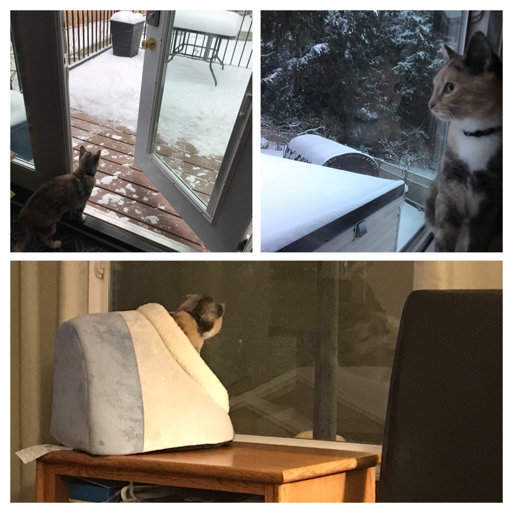 Flashback to our first snow fall on Vancouver Island this season. This blog post is dedicated to our rescue kitten, Sophia, as she experiences snow for the first time.