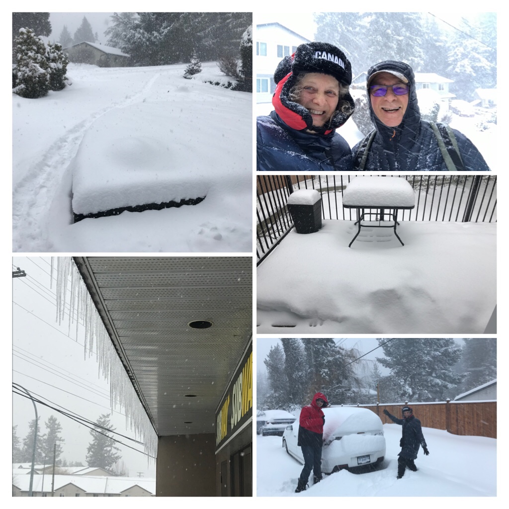 The snow decided to grace us with its presence for a few days as the centimeters increased steadily on our sundeck and around our neighborhood. We parked our vehicles at the top of our little hill as snowplows are rarely required here and cul de sacs are the last to be cleared when a snowfall does occur.