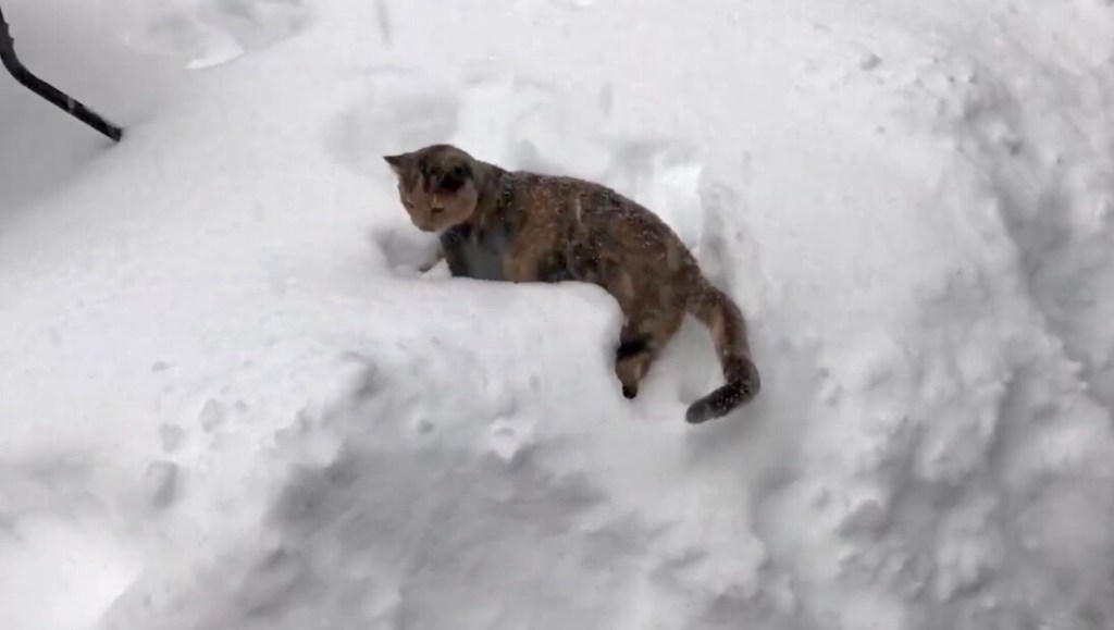Although initially dubious and slightly hesitant to immerse her paws and body in the cold white substance, she quickly embraced the experience tunneling through the snow and even playing with little snowballs. Here’s a short video of her very first reaction to snow!