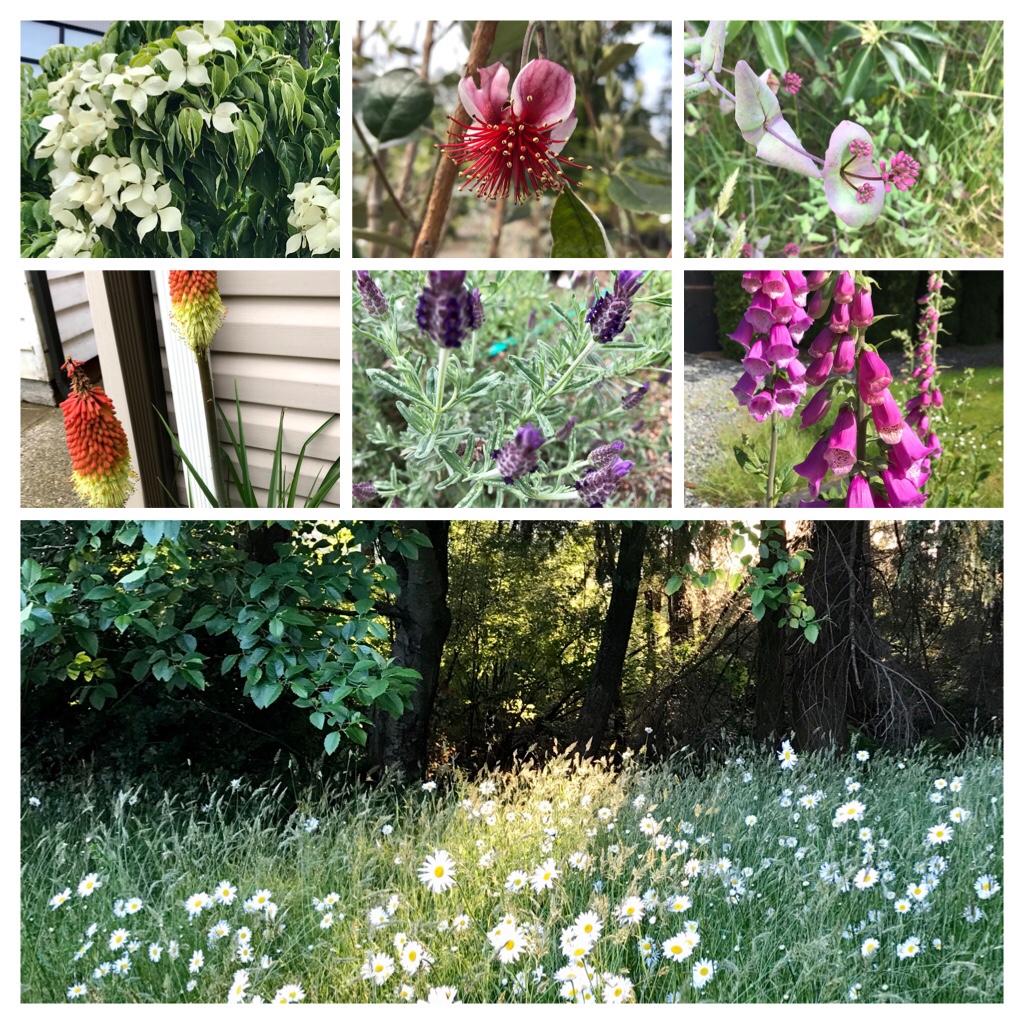 Bonus….As promised, here is a collage of a few of the diverse and beautiful flowers you could see while exploring the Nanaimo area on Vancouver Island during June.