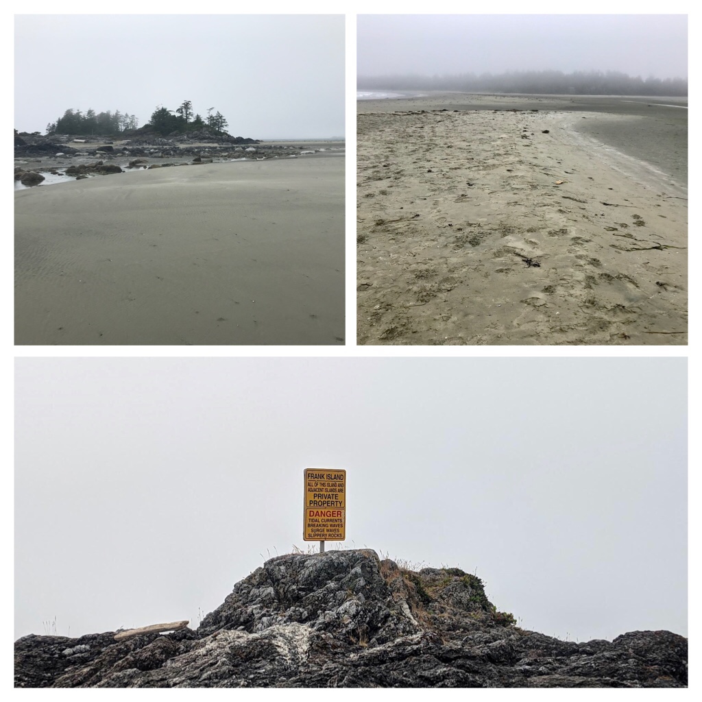 We walked toward Frank Island along the tombolo which is a sandy isthmus connecting Frank Island to Chesterman beaches during low tides.