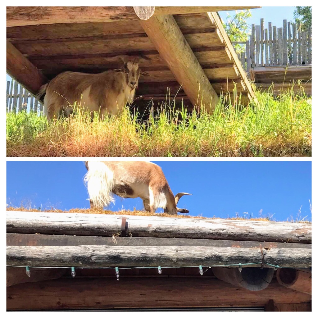Thirty-five minutes (44 km) after departing from Nanaimo, you drive past Coombs. It is difficult to miss the line ups of parked cars near the Old Country Market. Look up and you will usually spot the goats eating grass on the roof of the market.