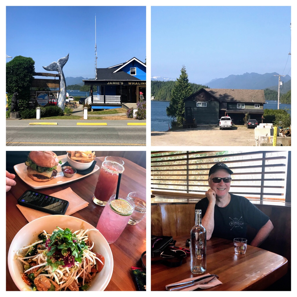 Later than planned, at 4pm (and 19 degrees) we were finally enjoying the beautiful main street of Tofino. We observed tourists, decked in matching life jackets, returning rental kayaks and gear; while another group (possibly exiting a whale watching tour) chugging up the hill at Jamie’s Whaling Station.