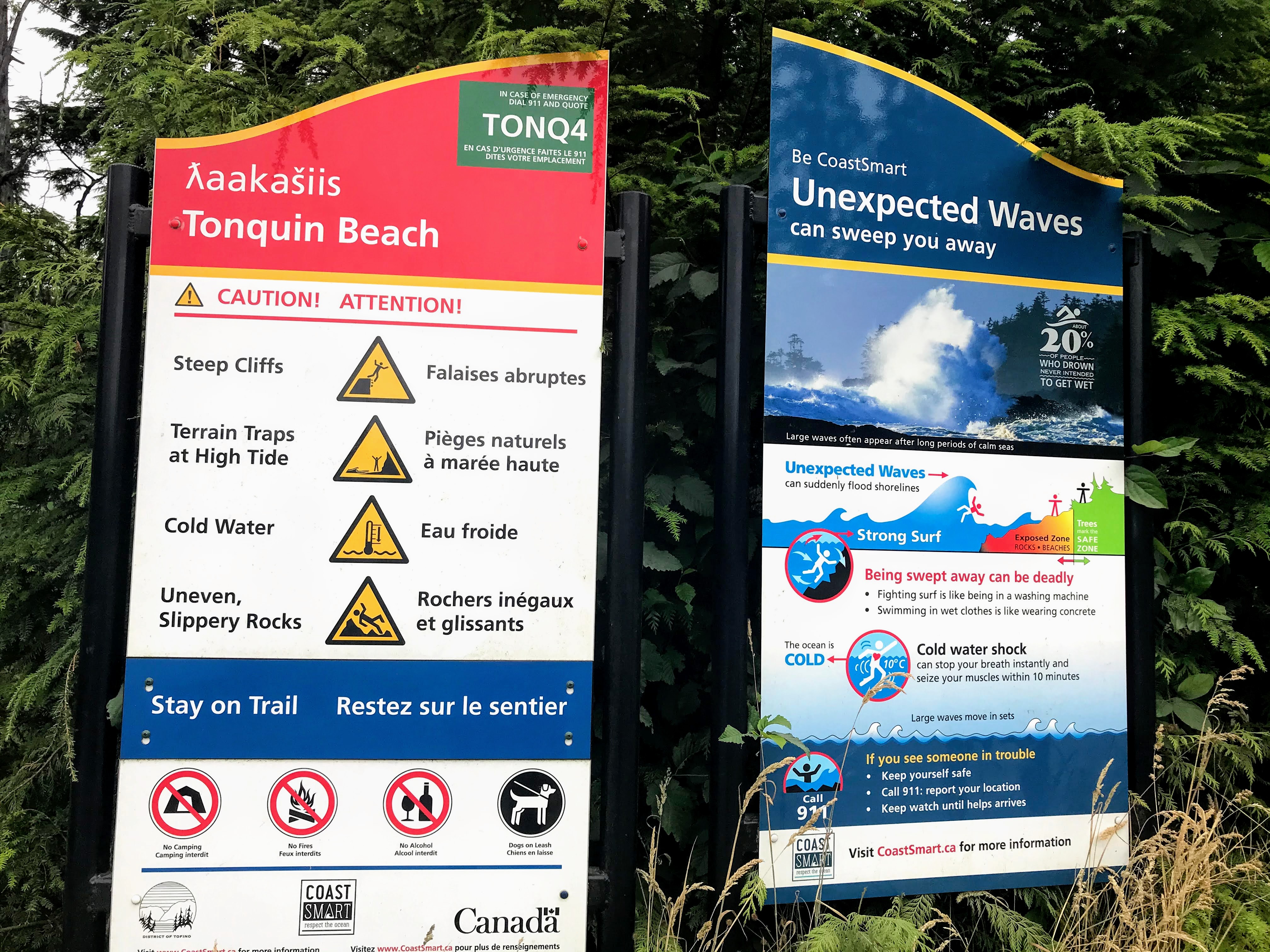 Warning signs remind locals and visitors that waves can appear unexpectedly and the weather/ocean conditions are tumultuous in Tofino. Today was calm and both the trails and ocean were pristine and stunning.