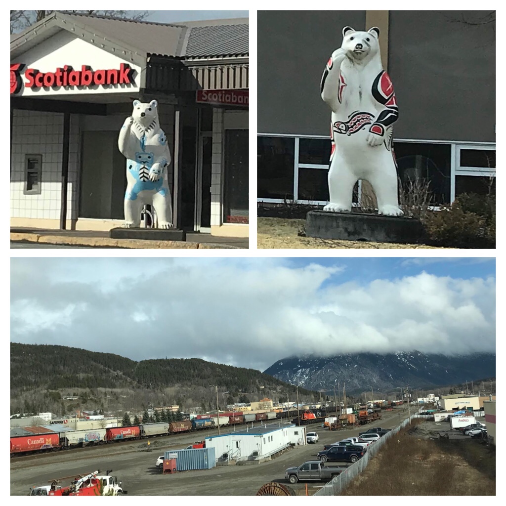 While exploring Terrace keep a look out for Kermode or Spirit bears! They have many Spirit bear statues scattered around the city. Each one is unique and beautiful. Here is a sample of 2 Spirit bears we discovered.