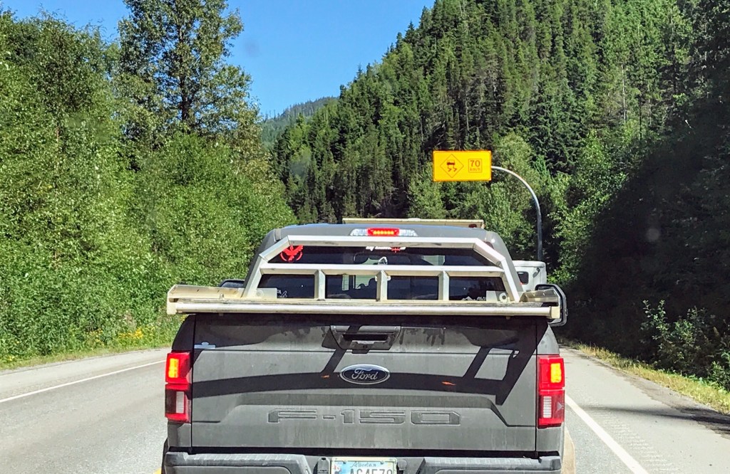 This truck from Alberta had an interesting metal attachment on the back. Hmmmm…. We rarely see these on Vancouver Island. But as my brother lives in Prince George and has one for his truck…. I am familiar with its purpose. Snowmobiles or ATV’s! During much of the year there is deep snow up here!