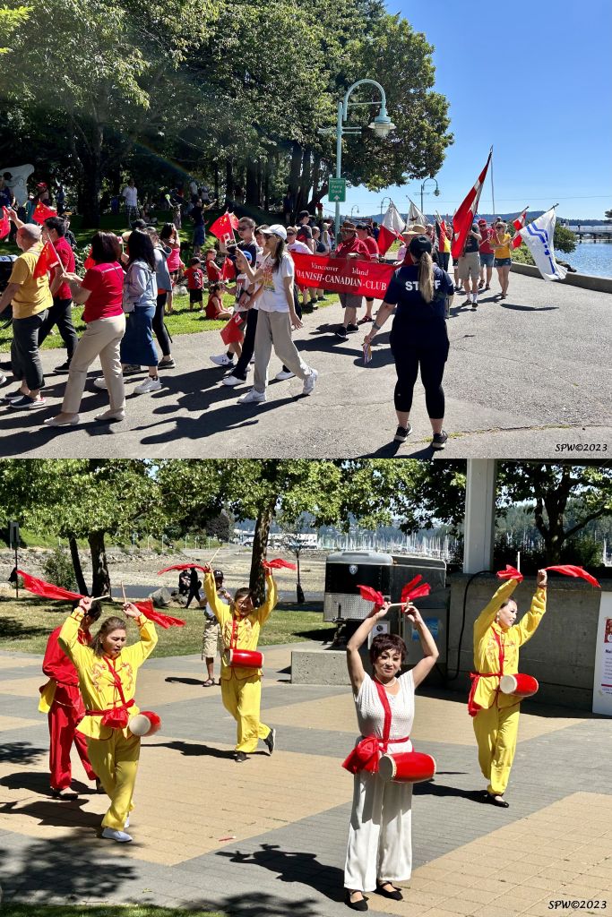 Prior to the official opening ceremonies at the Nanaimo pavilion, there was a flag bearer walk along the trail by the lagoon to the pavilion. A dance troupe sharing Chinese culture performed various times during the day.
