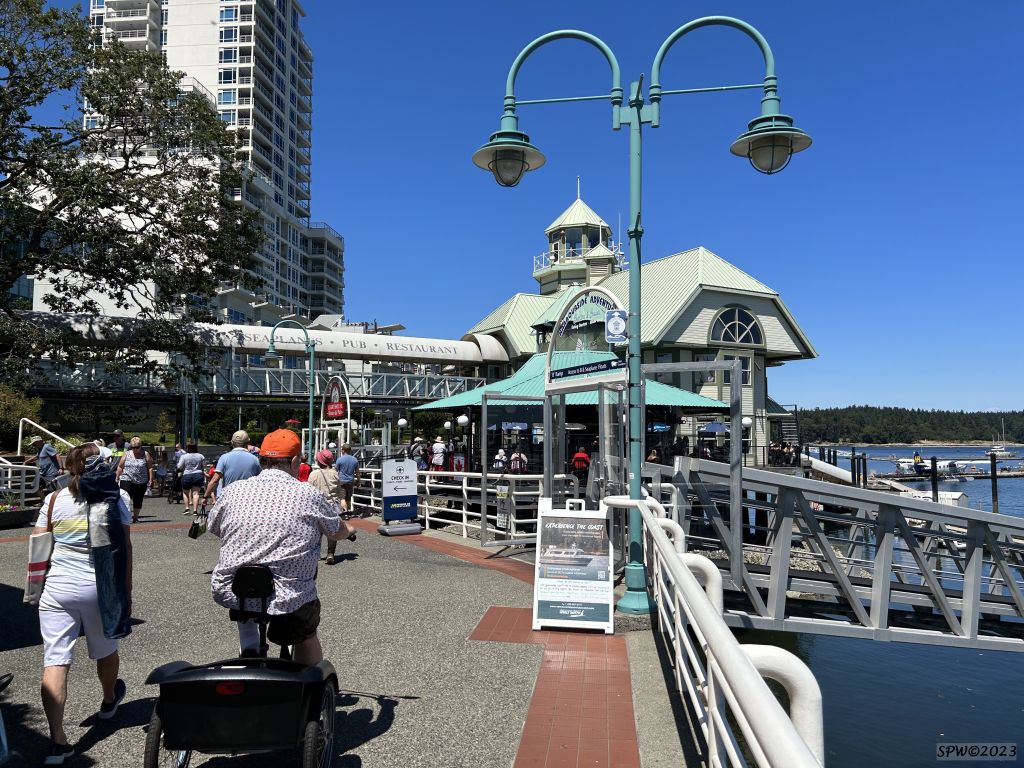 This photo depicts the seawall path by the float planes and close to the marina area. There are several ice-cream/gelato shops along here. One shop produces homemade ice-cream including the famous Nanaimo bar flavour!