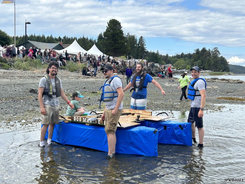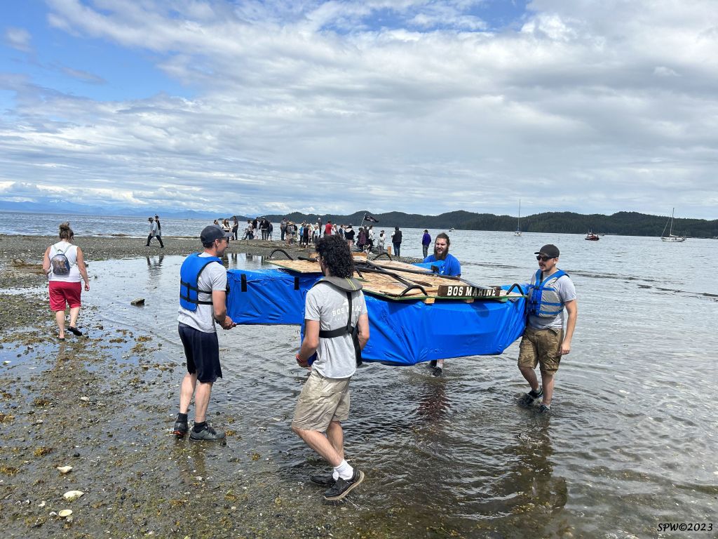 The Boat Building competition is another crowd favourite. The boats are usually designed prior to the event then each team has 3 hours to build their creation then launch it and try to steer the boat around a buoy and back to shore first without sinking! Each year we wonder what materials and designs will be effective (or not) and how many “boats” will successfully complete the voyage around the buoy. This year was particularly special as two of the competitors from the winning boat team were former students of mine. Congratulations Buddy and Adam!