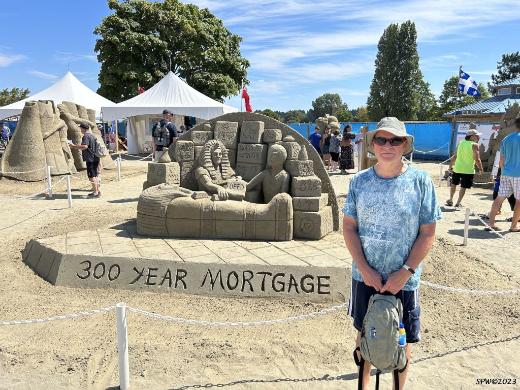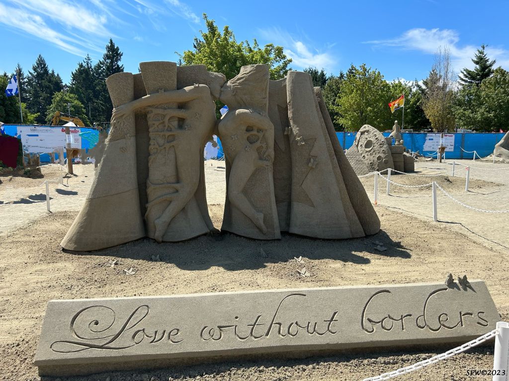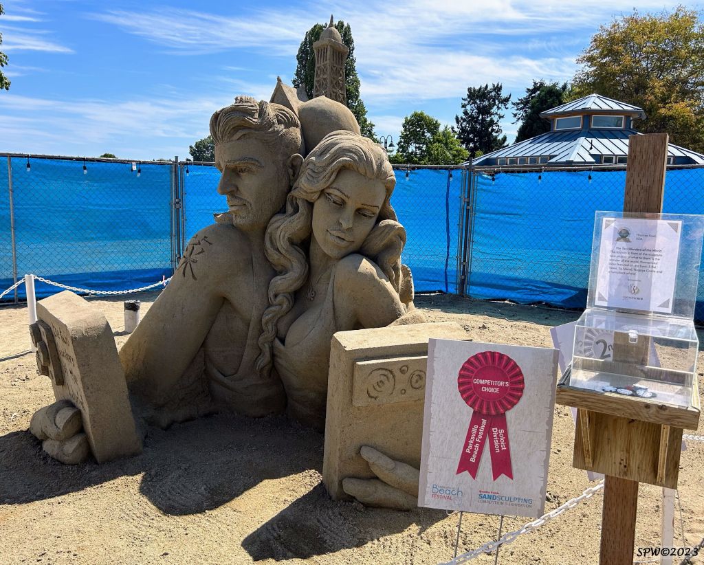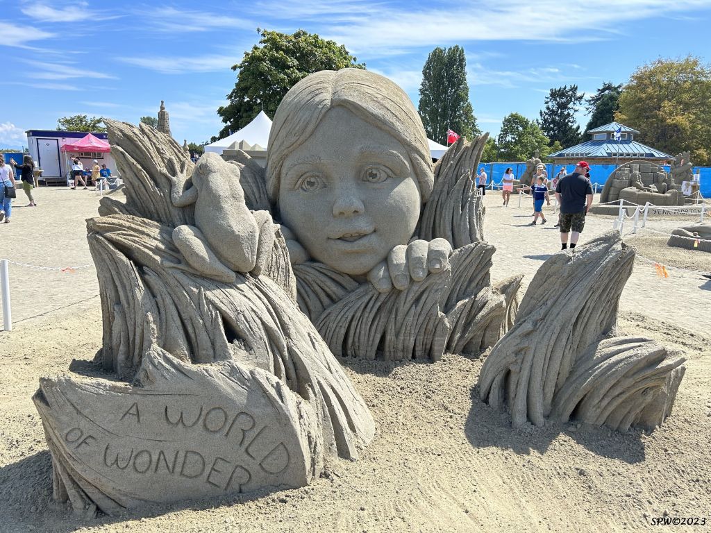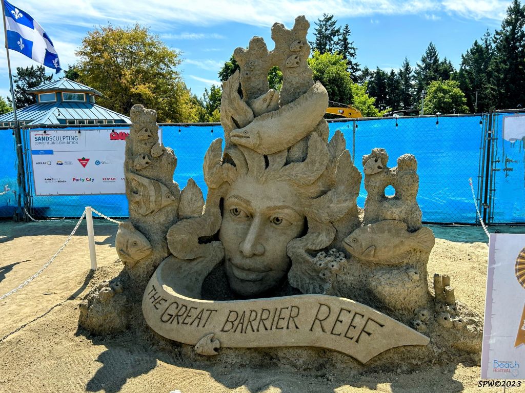 The photos in this blog post were taken during a visit to Parksville in mid August 2023. The location of the sand competition is adjacent to the Parksville beach/boardwalk/park area. The creation of the sculptures occurred from July 13th-16th when artists had 30 hours to create their elaborate sand interpretations. There are two main categories artists may select–solo or doubles.