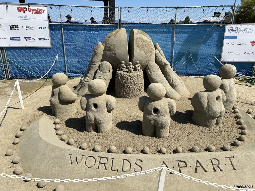 There were so many imaginative sculptures expressing visual messages. I have only provided a sample of some that intrigued me for varying reasons. This sculpture won my token for the People’s choice award. This is a personal experience…I look forward to next year’s theme and the powerful messages and beauty created in sand and shared by these talented artists.
