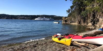 Kayaking around Newcastle Island (Saysutshun). Marine Provincial Park in Nanaimo.